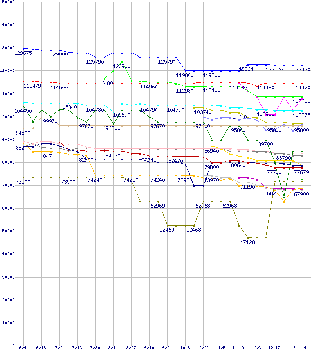 CPU主要製品(最安値3万円~6万円未満)の最安値推移