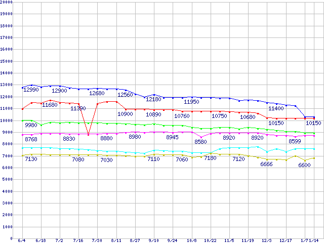 | [↑前グラフ]: | Socket 478・FSB 533MHzの最安値推移 |