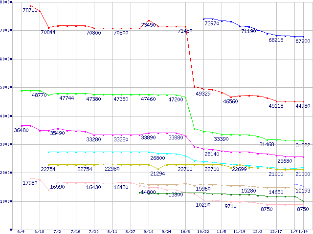 mPGA 479M・FSB 400MHzの最安値推移