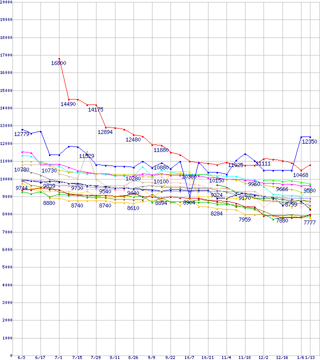 | [↓次グラフ]: | HDD 200~250GB未満の最安値推移 |