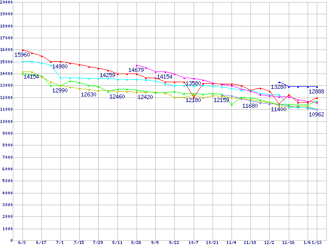| ※製品名をクリックすると個別のグラフを表示します ※点線部は販売店が確認できなかった、または調査データがないことを示します | |