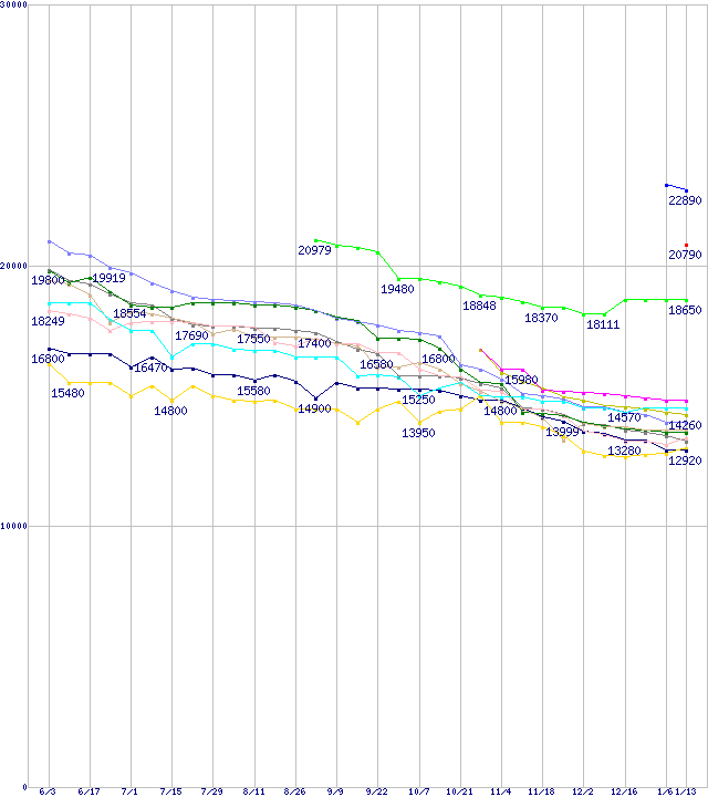 | [↑前グラフ]: | HDD 200~250GB未満の最安値推移 |