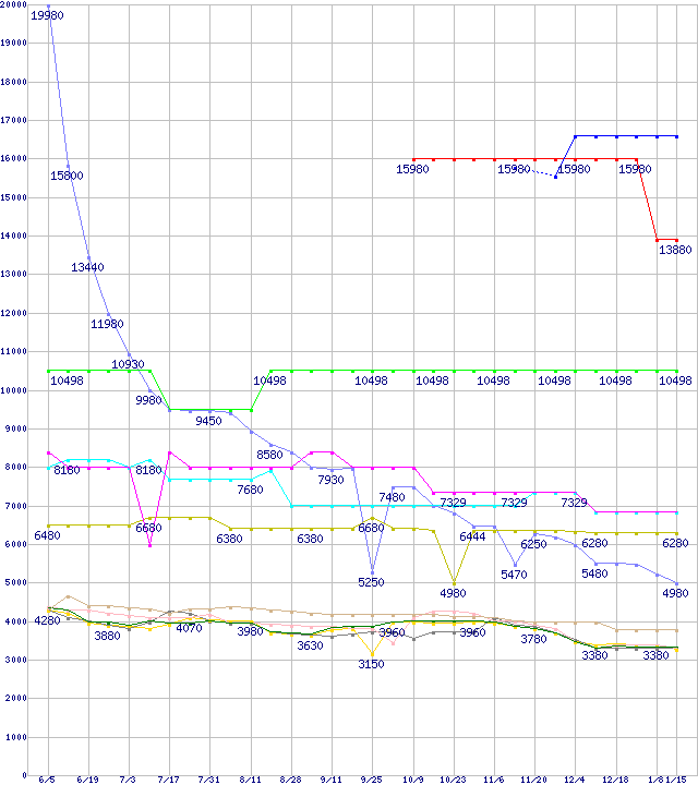 | [↑前グラフ]: | 512MBモジュールの最安値推移 |
