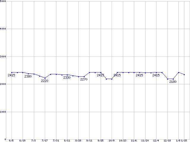 | [↓次グラフ]: | メモリ主要製品(最安値5千円未満)の最安値推移 |