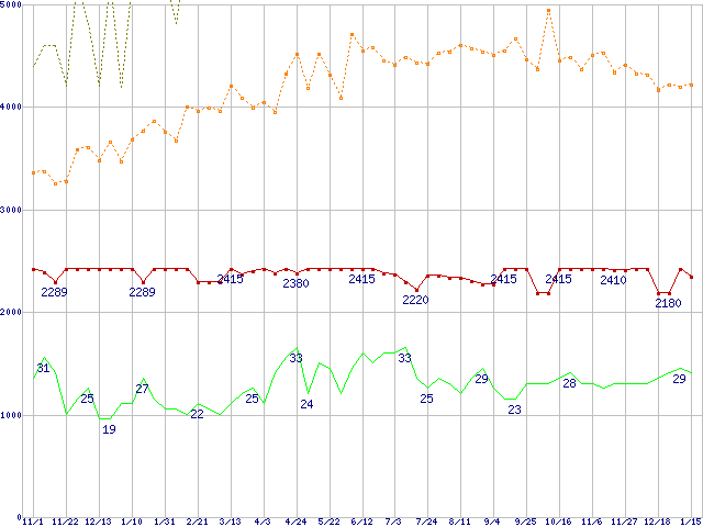 PC133 SDRAM DIMM CasLatency=3の最安値推移