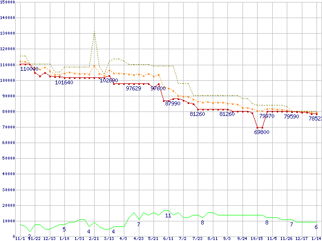 | Xeon 3.2GHz /L3 1MB(FSB533) リテールパッケージの価格推移 |
