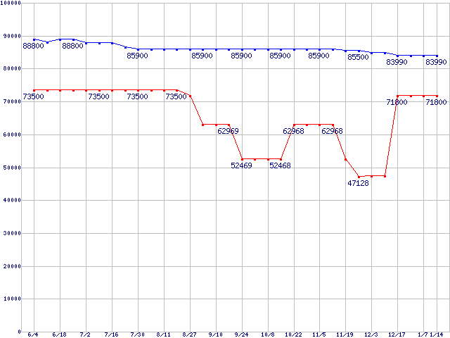 | [↑前グラフ]: | Socket 754 (PGA,FSB 800MHz)の最安値推移 |