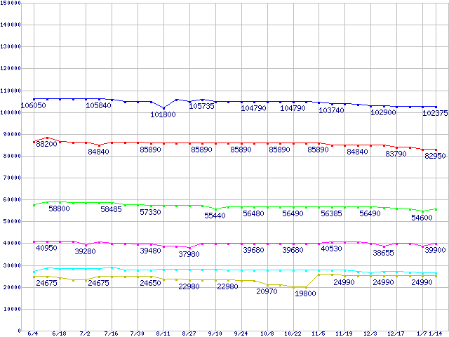 | [↑前グラフ]: | Socket 940 (PGA,FSB 800MHz,L2 1MB)の最安値推移 |