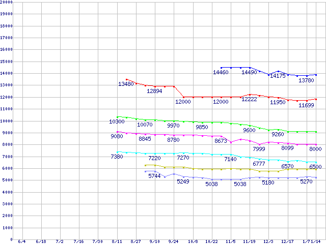 | [↑前グラフ]: | Socket 754 (PGA,FSB 800MHz,L2 256KB)の最安値推移 |