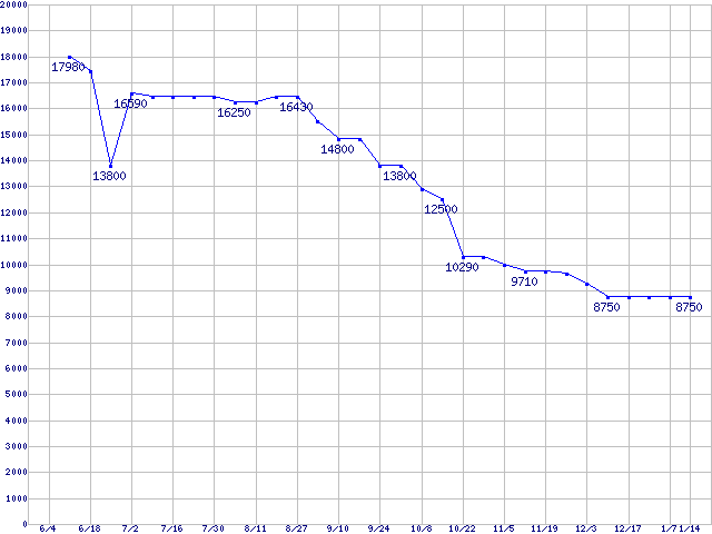 | [↑前グラフ]: | mPGA479M (Micro-FCPGA ,FSB 400MHz,L2 1MB,Dothan)の最安値推移 |