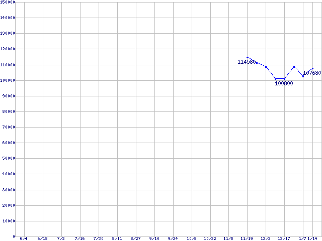 | LGA 775 (FC-LGA4,FSB 1066MHz,L2 512KB,L3 2MB,Hyper-Threading,Gallatin)の最安値推移 |