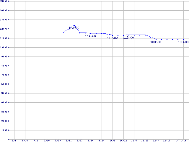 | [↑前グラフ]: | LGA 775 (FC-LGA4,FSB 1066MHz,L2 512KB,L3 2MB,Hyper-Threading,Gallatin)の最安値推移 |