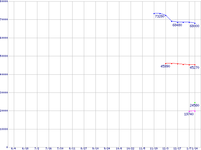 | [↑前グラフ]: | LGA 775 (FC-LGA4,FSB 800MHz,L2 512KB,L3 2MB,Hyper-Threading,Gallatin)の最安値推移 |