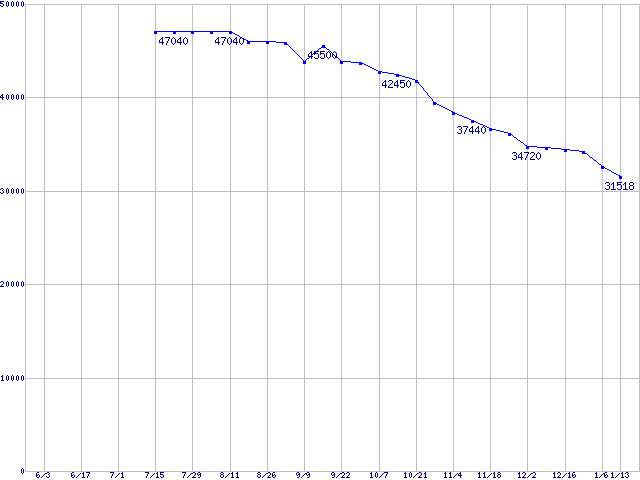 | [↑前グラフ]: | Deskstar 7K250 (7200rpm,SerialATA/150,FDB)の最安値推移 |