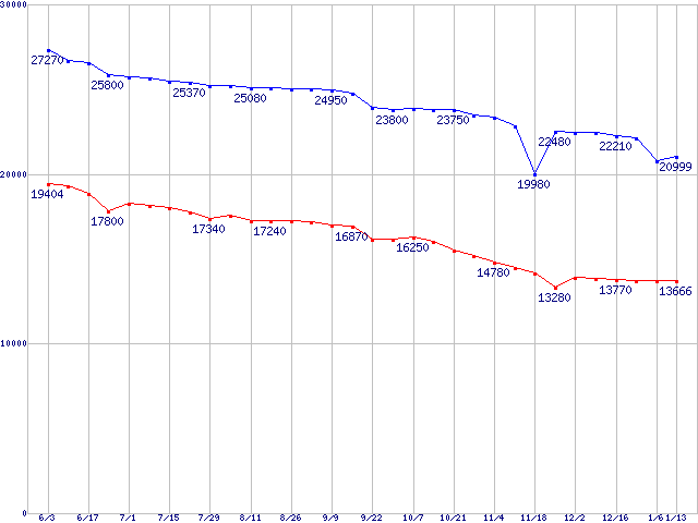 | [↑前グラフ]: | DiamondMax Plus 8 (7200rpm,2MB,UltraATA/133,FDB)の最安値推移 |