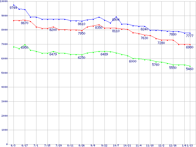 | [↑前グラフ]: | MaXLine II (5400rpm,UltraATA/133,2MB,80GB/Platter,BB)の最安値推移 |