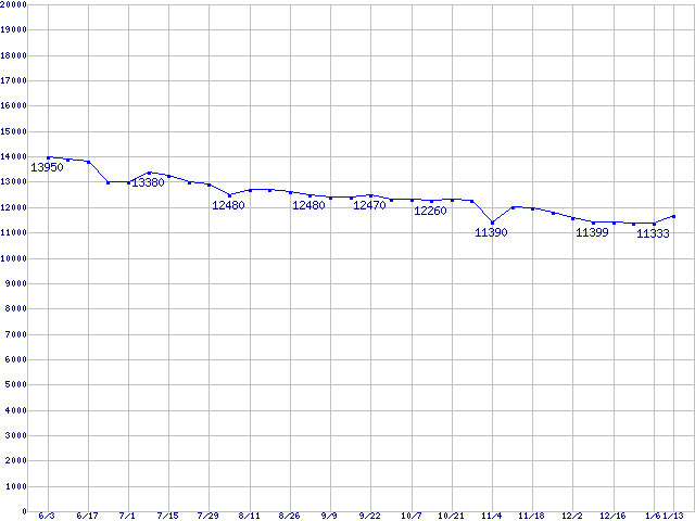 | [↑前グラフ]: | Barracuda 7200.8 (7200rpm,UltraATA/100,133GB/Platter,FDB)の最安値推移 |