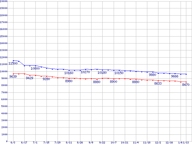 | [↑前グラフ]: | Barracuda 7200.7 Plus (7200rpm,UltraATA/100,8MB,100GB/Platter,FDB)の最安値推移 |