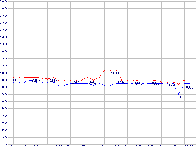 | SpinPoint P80 (7200rpm,UltraATA/133,2MB)の最安値推移 |