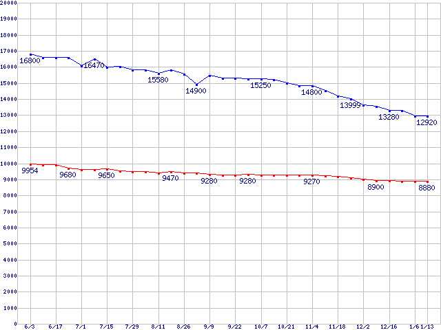 | [↑前グラフ]: | WD Caviar (7200rpm,SerialATA/150,8MB)の最安値推移 |
