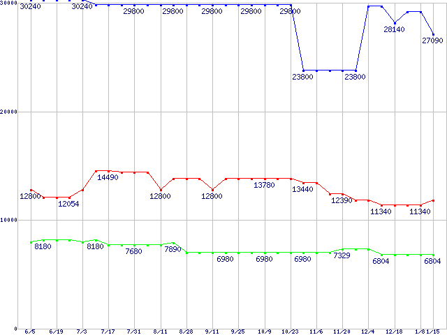 | [↑前グラフ]: | PC2700(DDR333) DDR SDRAM DIMMの最安値推移 |
