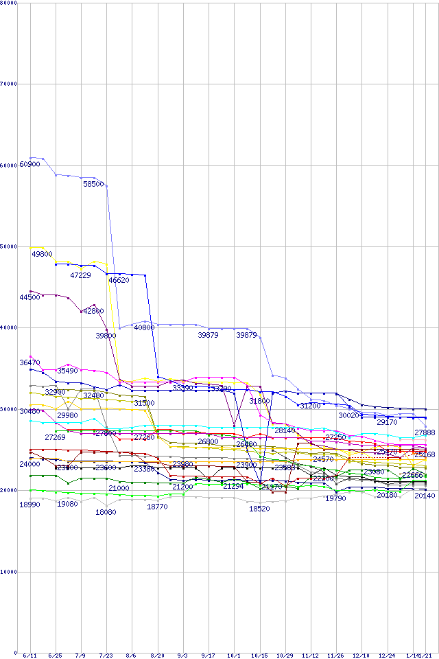 CPU主要製品(最安値3万円~6万円未満)の最安値推移