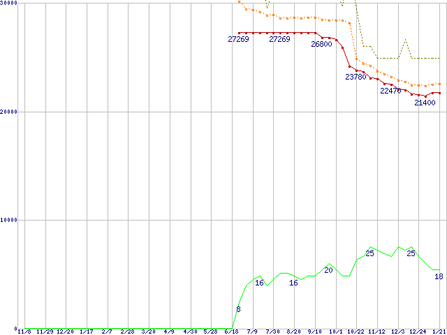 | Pentium M 725 (1.60GHz) リテールパッケージの価格推移 |