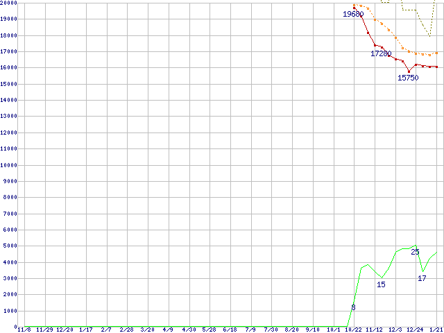 | Athlon 64 3000+(1.8GHz,L2 512KB,socket939) リテールパッケージの価格推移 |