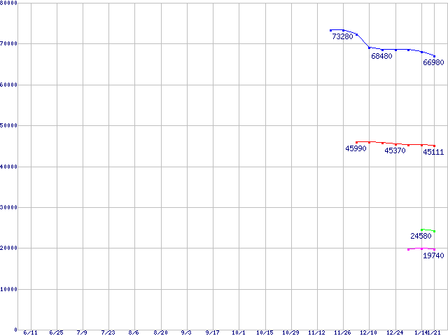 | [↑前グラフ]: | LGA 775 (FC-LGA4 ,FSB 800MHz,L2 1MB,Hyper-Threading,Prescott,EM64T対応)の最安値推移 |