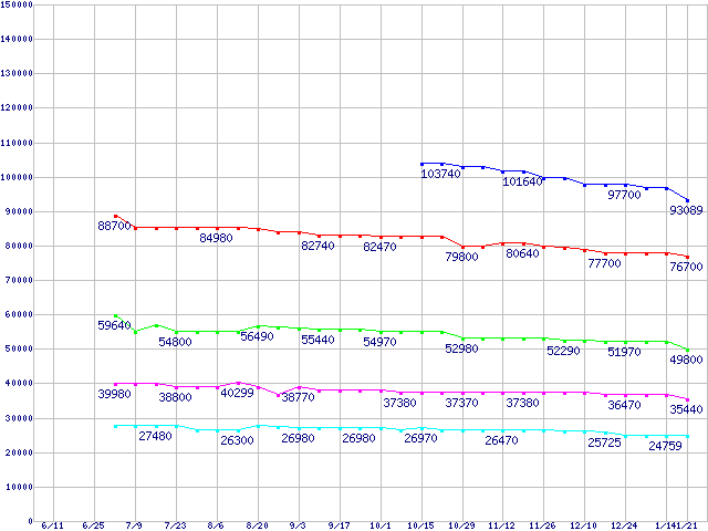 | [↑前グラフ]: | Socket 478 (micro-PGA,FSB 533MHz,L2 512KB,Northwood)の最安値推移 |