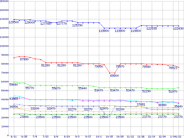 | [↑前グラフ]: | Socket 604 (FCBGA,FSB 800MHz,L2 1MB,Nocona)の最安値推移 |