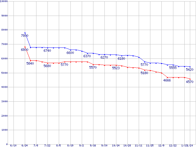 | [↑前グラフ]: | Deskstar 7K250 (7200rpm,UltraATA/100,FDB)の最安値推移 |