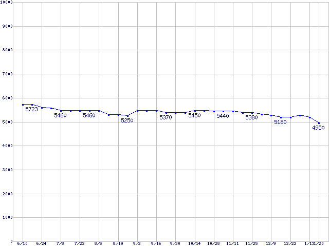 | Fireball 3 (5400rpm,UltraATA/133,2MB,FDB)の最安値推移 |