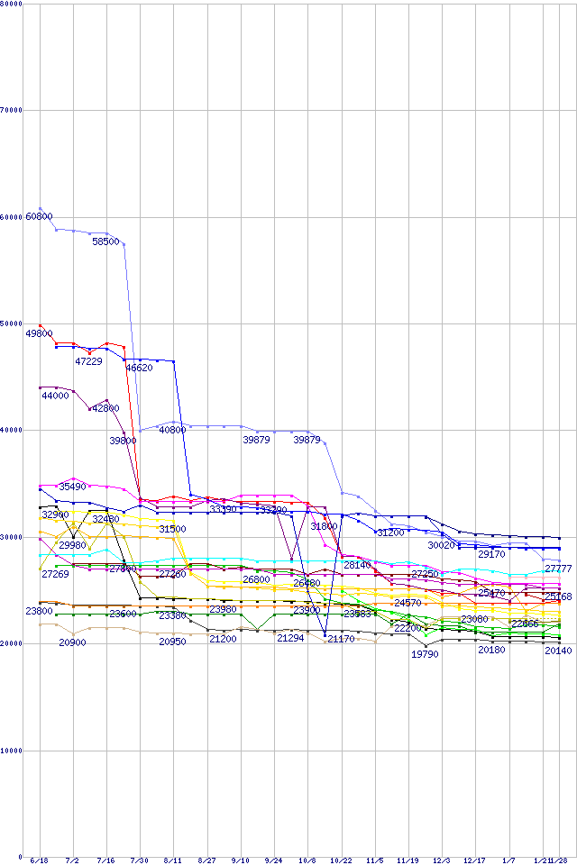 CPU主要製品(最安値1万円~2万円未満)の最安値推移