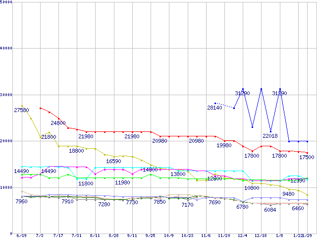 | [↑前グラフ]: | 1GBモジュールの最安値推移 |