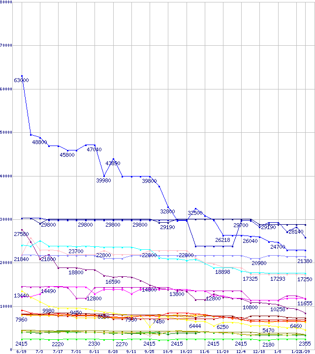 メモリ主要製品の最安値推移