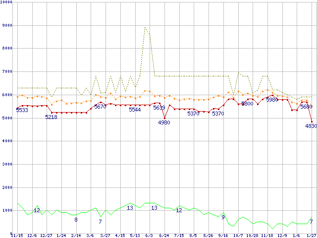 | ※このグラフは過去のデータも税率5%相当に調整した税込み相当額のグラフです。 税率変更や、総額表示方式導入(2004年4月)の影響は除いています。 | |||||||||||||||