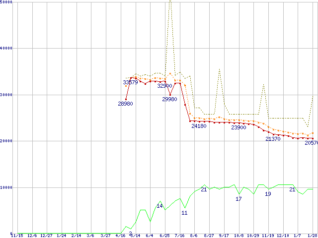 | Athlon 64 3200+(2.2GHz,L2 512KB) リテールパッケージの価格推移 |