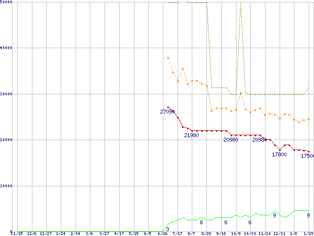 | PC2 3200 DDR2 SDRAM 512MB ECC Registeredの価格推移 |