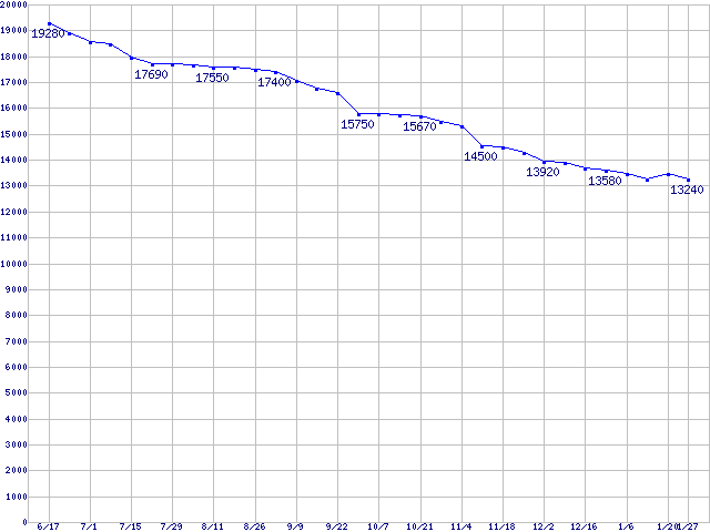 | [↑前グラフ]: | DiamondMax 10 (7200rpm,Ultra ATA/133,FDB)の最安値推移 |