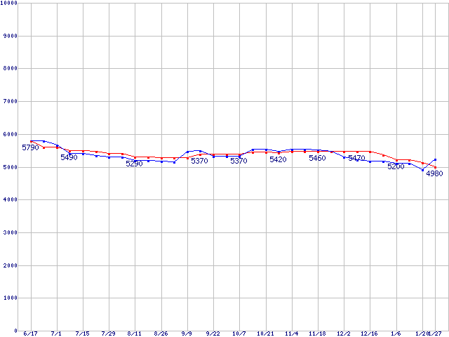| [↑前グラフ]: | DiamondMax Plus 9 (7200rpm,2MB,Ultra ATA/133,FDB)の最安値推移 |