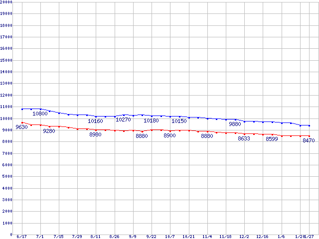 | [↑前グラフ]: | Barracuda 7200.7 Plus (7200rpm,Ultra ATA/100,8MB,100GB/Platter,FDB)の最安値推移 |