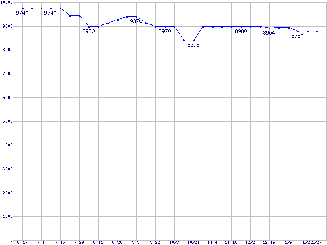| [↑前グラフ]: | WD Raptor (10000rpm,Serial ATA/150,8MB)の最安値推移 |