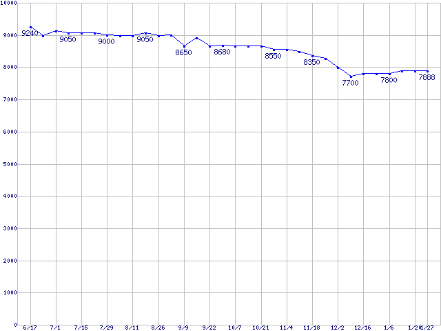| WD Caviar (7200rpm,Ultra ATA/100,2MB)の最安値推移 |