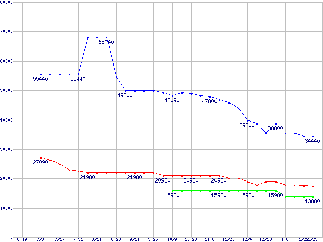 | [↑前グラフ]: | PC2 4300(DDR2 533) DDR2 SDRAM DIMMの最安値推移 |