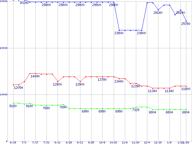 | [↑前グラフ]: | PC2700(DDR333) DDR SDRAM DIMMの最安値推移 |