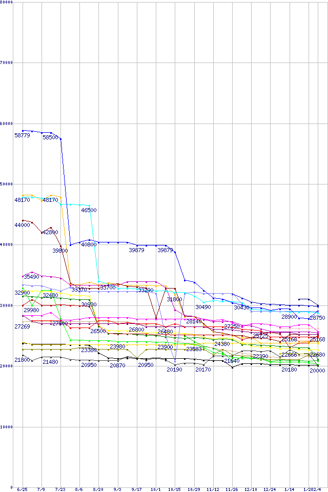 CPU主要製品(最安値2万円~3万円未満)の最安値推移