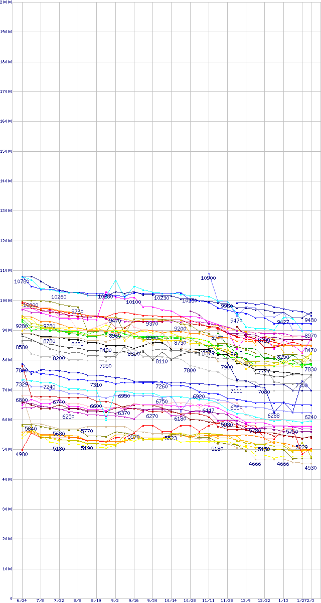 ※製品名をクリックすると個別のグラフを表示します ※点線部は販売店が確認できなかった、または調査データがないことを示します |