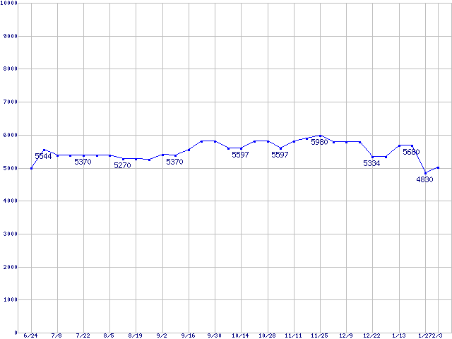 | [↓次グラフ]: | HDD 30GB~80GB未満の最安値推移 |