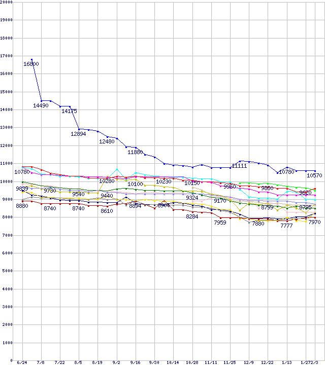 | [↓次グラフ]: | HDD 200~250GB未満の最安値推移 |